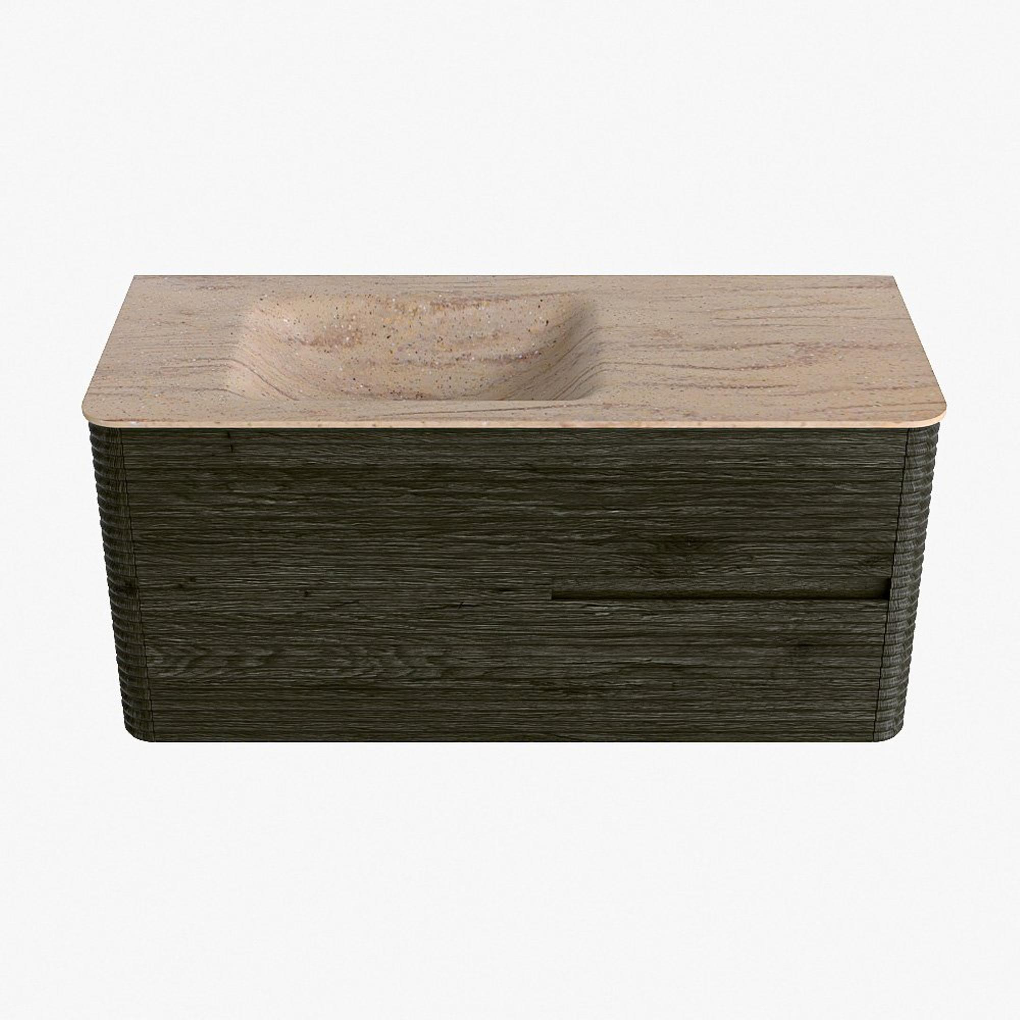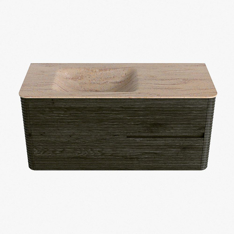 Mondiaz CIRO-DLUX Meuble de salle de bains avec vasque - 110x45x50cm - Vasque en solid surface Saba - 1 lavabo à gauche - 1 trou de robinet - 2 tiroirs - Shadow