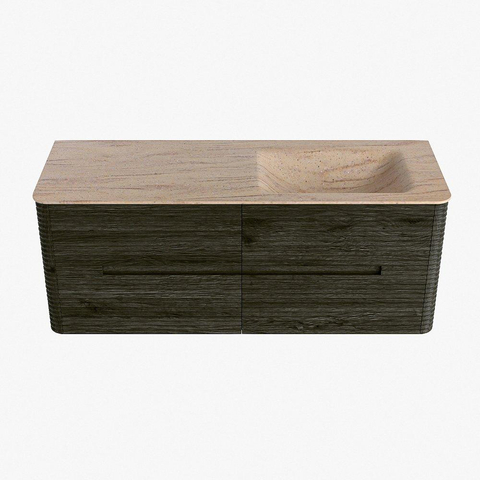 Mondiaz CIRO-DLUX Ensemble de meubles de salle de bains - 130x45x50cm - Plan-vasque Solid surface Saba - 1 lavabo à droite - 1 trou de robinet - 4 tiroirs - Shadow