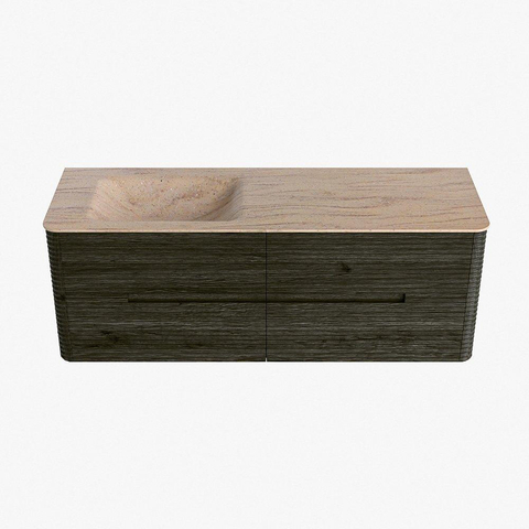 Mondiaz CIRO-DLUX Meuble de salle de bains - 140x45x50cm - Plan-vasque Solid surface Saba - 1 vasque à gauche - sans trous de robinetterie - 4 tiroirs - Shadow
