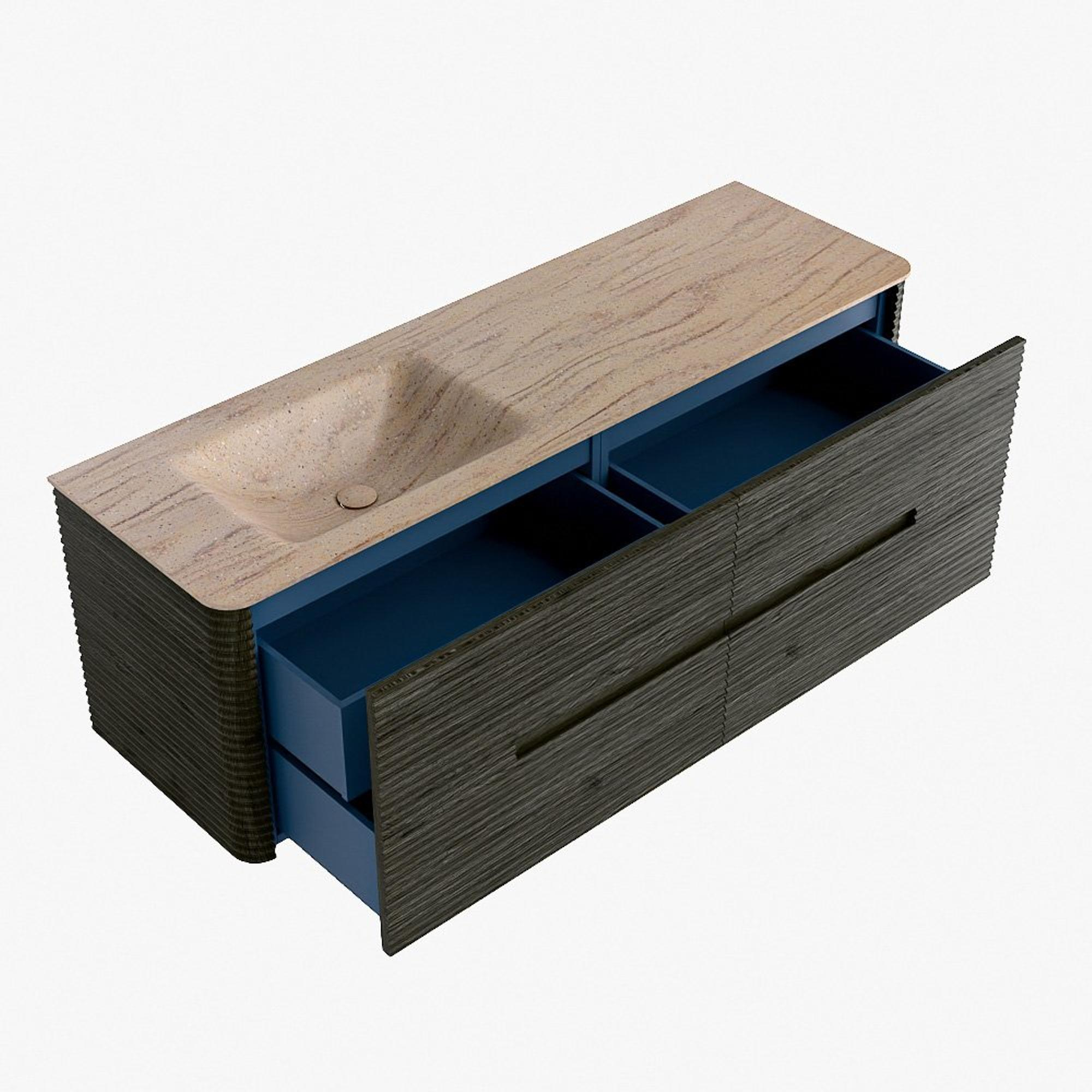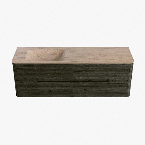 Mondiaz CIRO-DLUX Meuble de salle de bains - 150x45x50cm - Plan vasque en solid surface Saba - 1 vasque à gauche - 1 trou de robinet - 4 tiroirs - Shadow