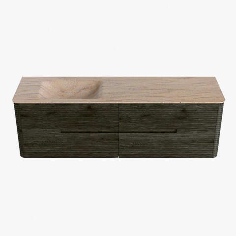Mondiaz CIRO-DLUX Ensemble de meubles de salle de bains - 160x45x50cm - Plan vasque Solid surface Saba - 1 vasque à gauche - 1 trou de robinet - 4 tiroirs - Shadow