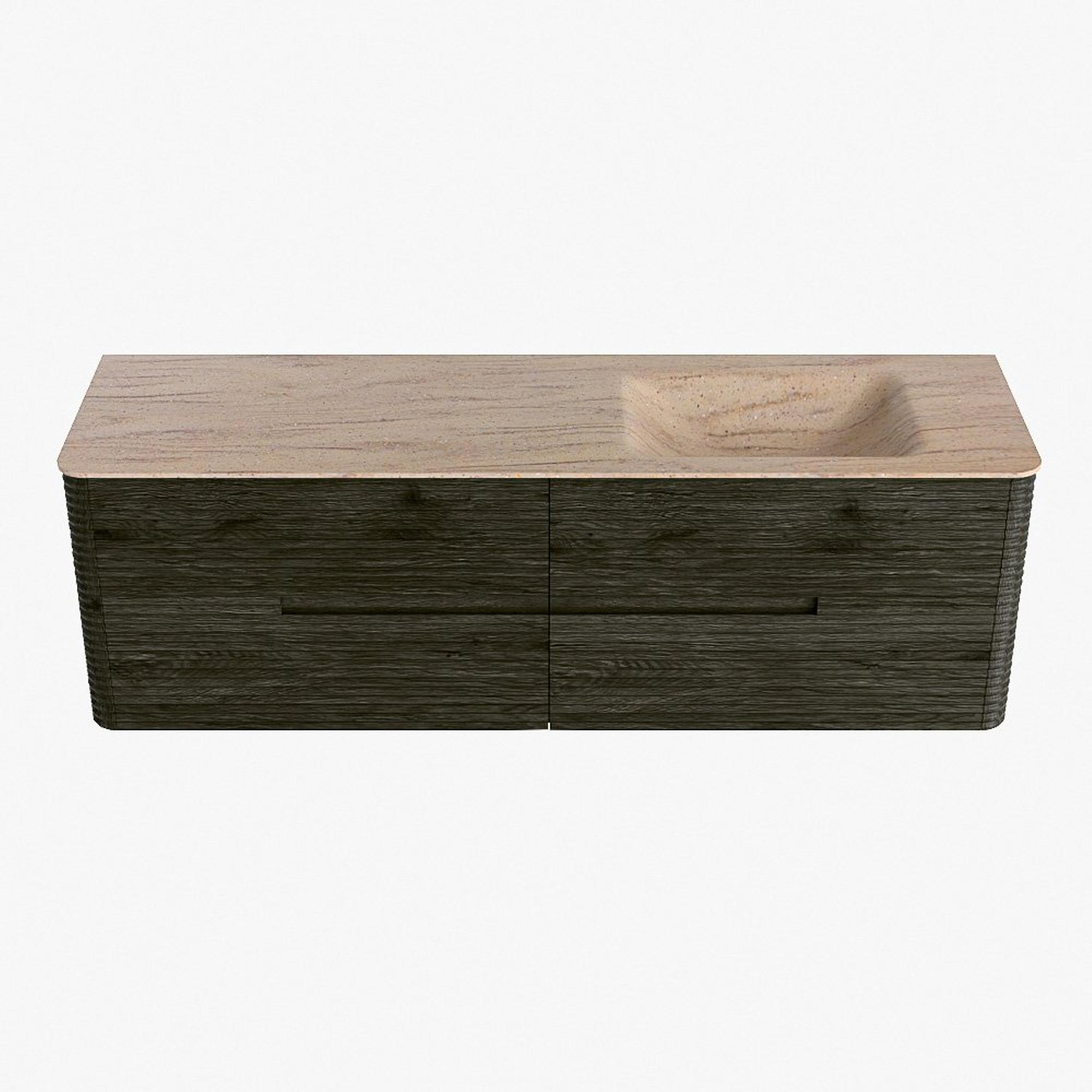 Mondiaz CIRO-DLUX Ensemble de meubles de salle de bains - 160x45x50cm - lavabo solid surface Saba - 1 vasque à droite - sans trous de robinet - 4 tiroirs - Shadow