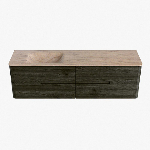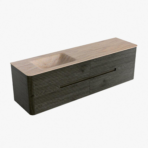 Mondiaz CIRO-DLUX Meuble de salle de bains - 170x45x50cm - Plan-vasque Solid surface Saba - 1 vasque à gauche - 1 trou de robinet - 4 tiroirs - Shadow