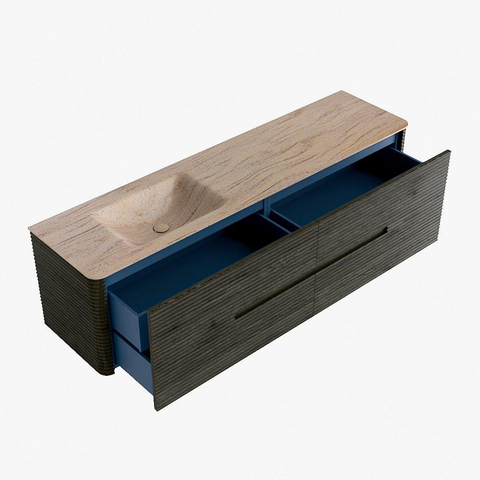 Mondiaz CIRO-DLUX Ensemble de meubles de salle de bains - 180x45x50cm - plan vasque Solid surface Saba - 1 bassin à gauche - sans trous de robinet - 4 tiroirs - Shadow