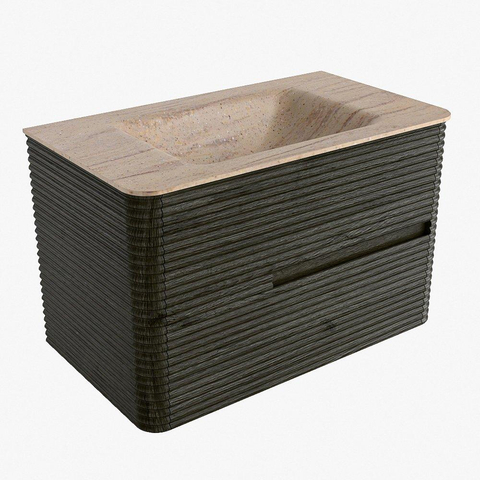 Mondiaz CIRO-DLUX Meuble de salle de bains - 80x45x50cm - Vasque solid surface Saba - 1 lavabo au milieu - 1 trou de robinet - 2 tiroirs - Shadow