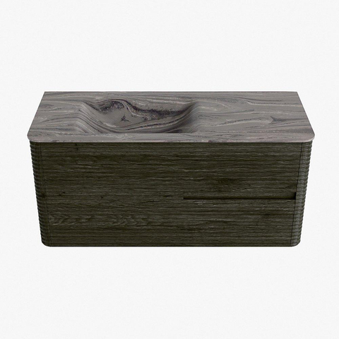 Mondiaz CIRO-DLUX Meuble de salle de bains - 110x45x50cm - Vasque en solid surface Sombra - 1 bassin à gauche - sans trous de robinet - 2 tiroirs - Shadow