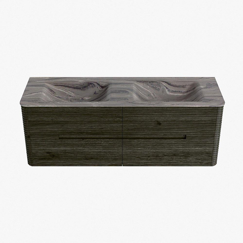 Mondiaz CIRO-DLUX Meuble de salle de bains ensemble - 140x45x50cm - vasque solid surface Sombra - 2 vasques double - sans trous de robinet - 4 tiroirs - Shadow
