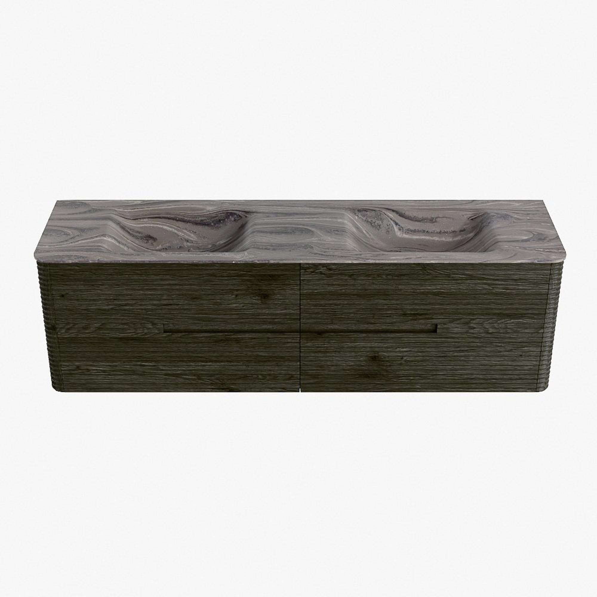 Mondiaz CIRO-DLUX Meuble de salle de bains - 170x45x50cm - Plan vasque solid surface Sombra - 2 vasques Double - sans trous de robinet - 4 tiroirs - Shadow