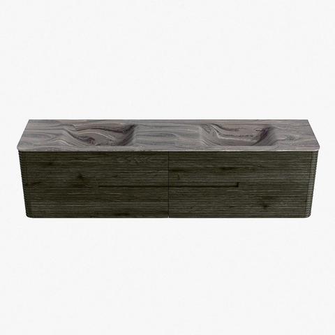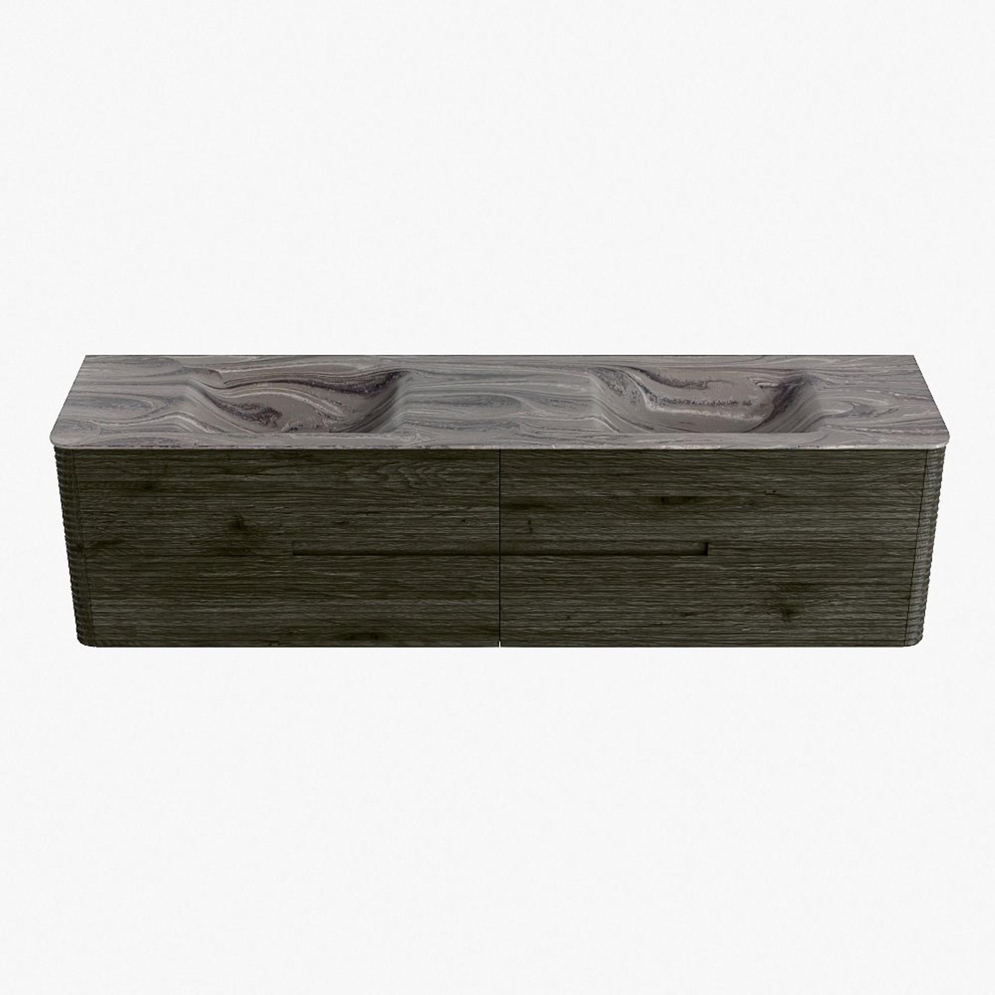 Mondiaz CIRO-DLUX Ensemble meuble de salle de bains - 190x45x50cm - Plan vasque solid surface Sombra - 2 bacs Double - sans trous de robinet - 4 tiroirs - Shadow