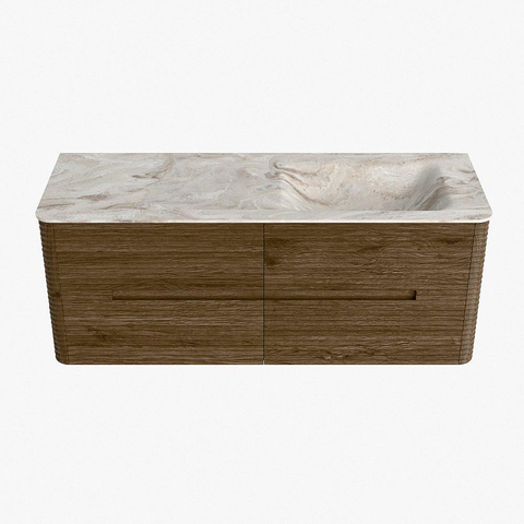 Mondiaz CIRO-DLUX Ensemble de meubles de salle de bains - 130x45x50cm - lavabo solid surface Frappe - 1 vasque à droite - sans trous de robinet - 4 tiroirs - Dusk