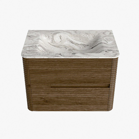 Mondiaz CIRO-DLUX Ensemble de meubles de salle de bains - 70x45x50cm - lavabo solid surface Glace - 1 vasque au milieu - sans trous de robinet - 2 tiroirs - Dusk