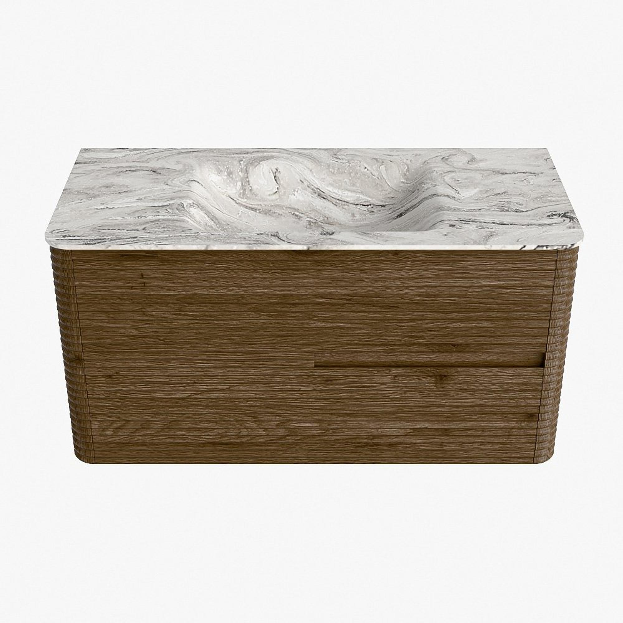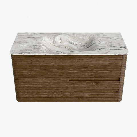 Mondiaz CIRO-DLUX Ensemble de meubles de salle de bains - 100x45x50cm - vasque Solid surface Glace - 1 lavabo central - sans trous de robinetterie - 2 tiroirs - Dusk