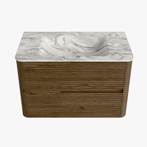 Mondiaz CIRO-DLUX Ensemble de meubles de salle de bains - 80x45x50cm - vasque solid surface Glace - 1 lavabo au milieu - sans trous de robinet - 2 tiroirs - Dusk
