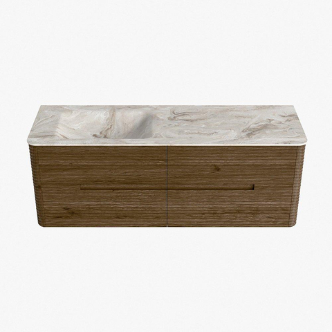 Mondiaz CIRO-DLUX Ensemble de meubles de salle de bains - 140x45x50cm - Vasque en solid surface Frappe - 1 lavabo à gauche - 1 trou de robinet - 4 tiroirs - Dusk