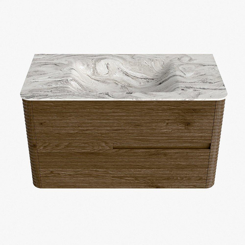 Mondiaz CIRO-DLUX Ensemble de meubles de salle de bains - 90x45x50cm - lavabo solid surface Glace - 1 vasque au milieu - 1 trou de robinet - 2 tiroirs - Dusk