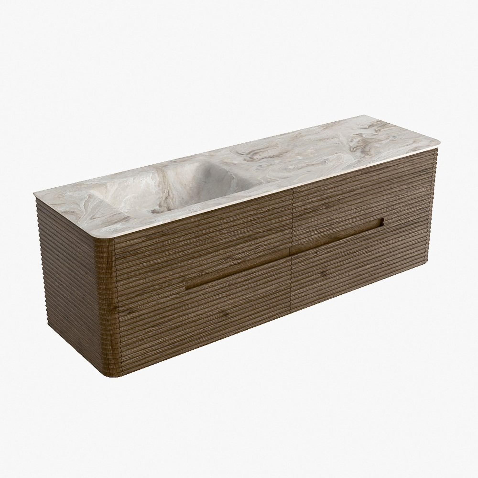 Mondiaz CIRO-DLUX Meuble de salle de bains - 150x45x50cm - Plan-vasque solid surface Frappe - 1 lavabo à gauche - sans trous de robinetterie - 4 tiroirs - Dusk