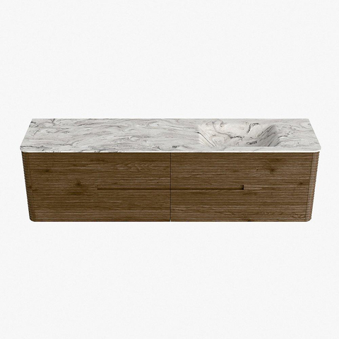 Mondiaz CIRO-DLUX Meuble de salle de bains - 180x45x50cm - Plan vasque solid surface Glace - 1 vasque à droite - sans trous de robinet - 4 tiroirs - Dusk
