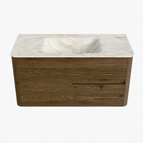 Mondiaz CIRO-DLUX Meuble de salle de bains - 100x45x50cm - Plan vasque en solid surface Ostra - 1 lavabo central - 1 trou de robinet - 2 tiroirs - Dusk