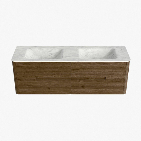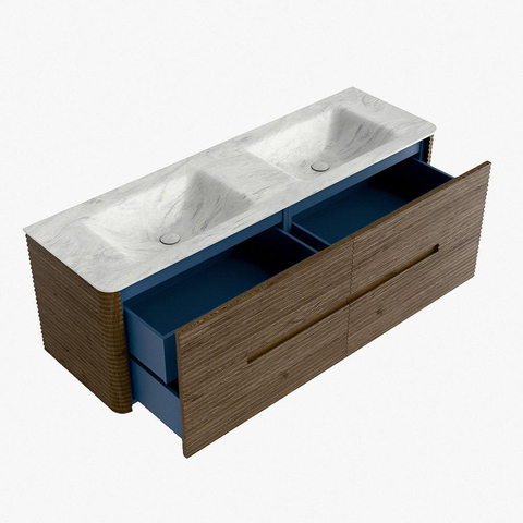 Mondiaz CIRO-DLUX Meuble de salle de bains - 150x45x50cm - plan vasque Solid Surface Opalo - 2 bassins Double - sans trous de robinetterie - 4 tiroirs - Dusk