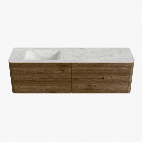 Mondiaz CIRO-DLUX Meuble de salle de bains - 170x45x50cm - Plan vasque solid surface Opalo - 1 lavabo à gauche - 1 trou de robinetterie - 4 tiroirs - Dusk