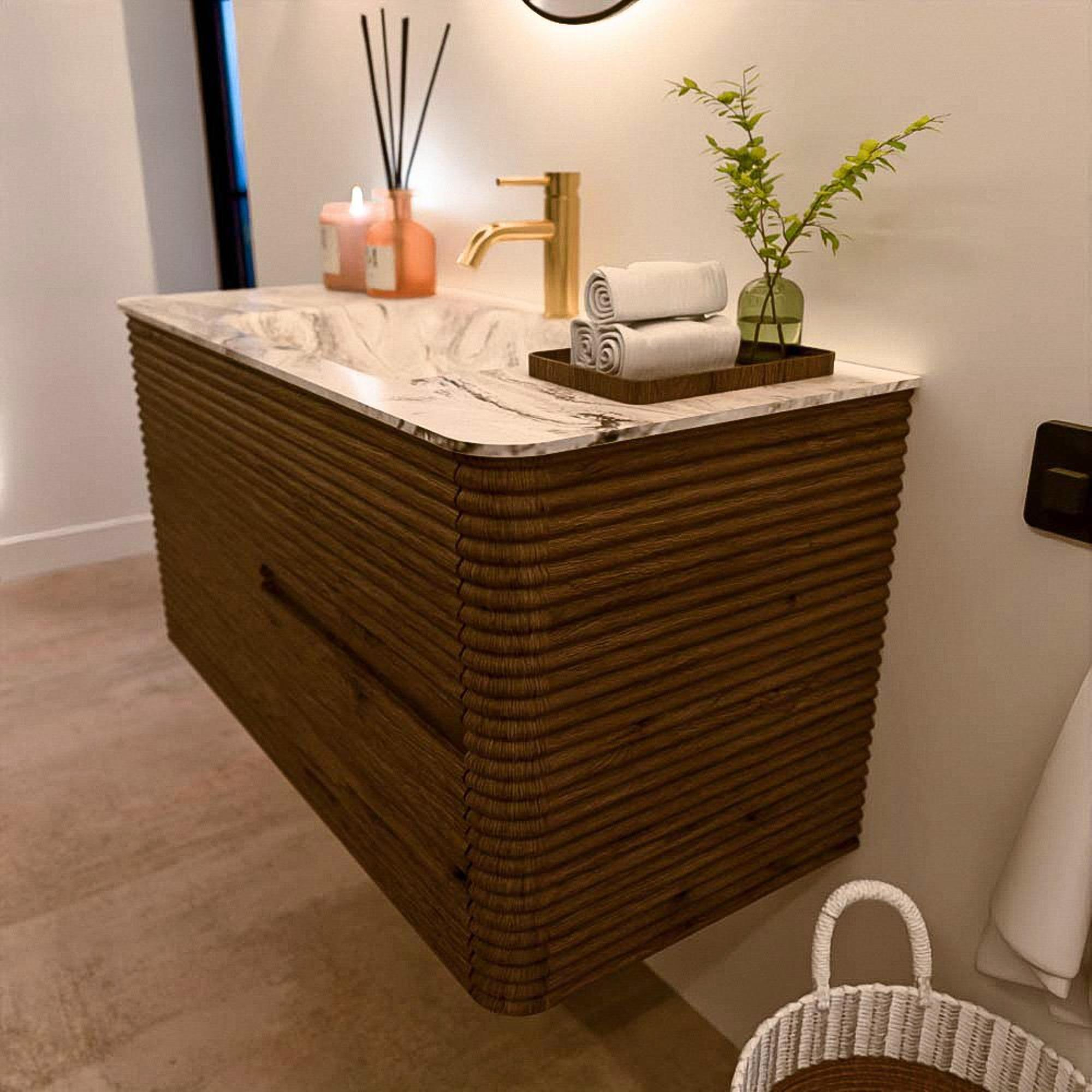 Le meuble de salle de bain CIRO-DLUX a été développé pour ceux qui choisissent un design moderne, des matériaux naturels et une fonctionnalité de haute qualité. Avec des dimensions allant de 70 cm à 190 cm, la gamme CIRO-DLUX s’intègre facilement aussi bien dans les salles de bain compactes que dans les grands espaces de design. Chaque meuble est une combinaison équilibrée d’esthétique, de savoir-faire et de qualité durable.