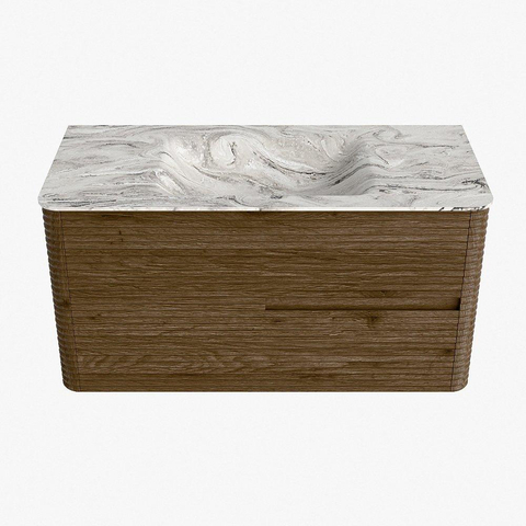 Mondiaz CIRO-DLUX Meuble de salle de bains - 100x45x50cm - Plan-vasque solid surface Glace - 1 vasque centrale - 1 trou de robinet - 2 tiroirs - Dusk