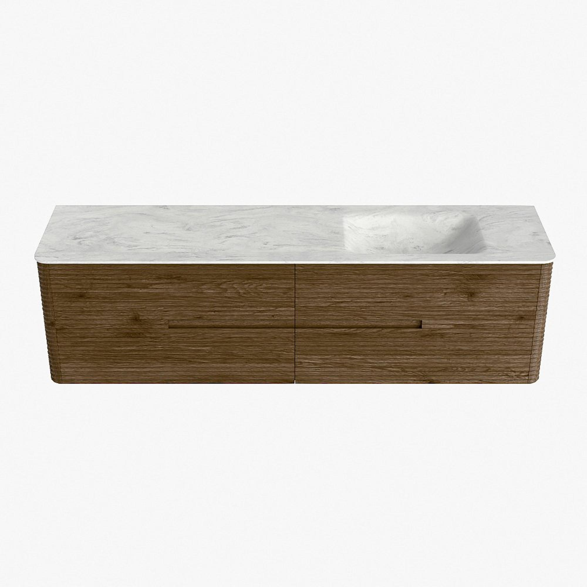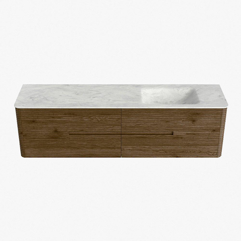 Mondiaz CIRO-DLUX Meuble de salle de bains - 180x45x50cm - Plan vasque Solid surface Opalo - 1 lavabo à droite - sans trous de robinetterie - 4 tiroirs - Dusk