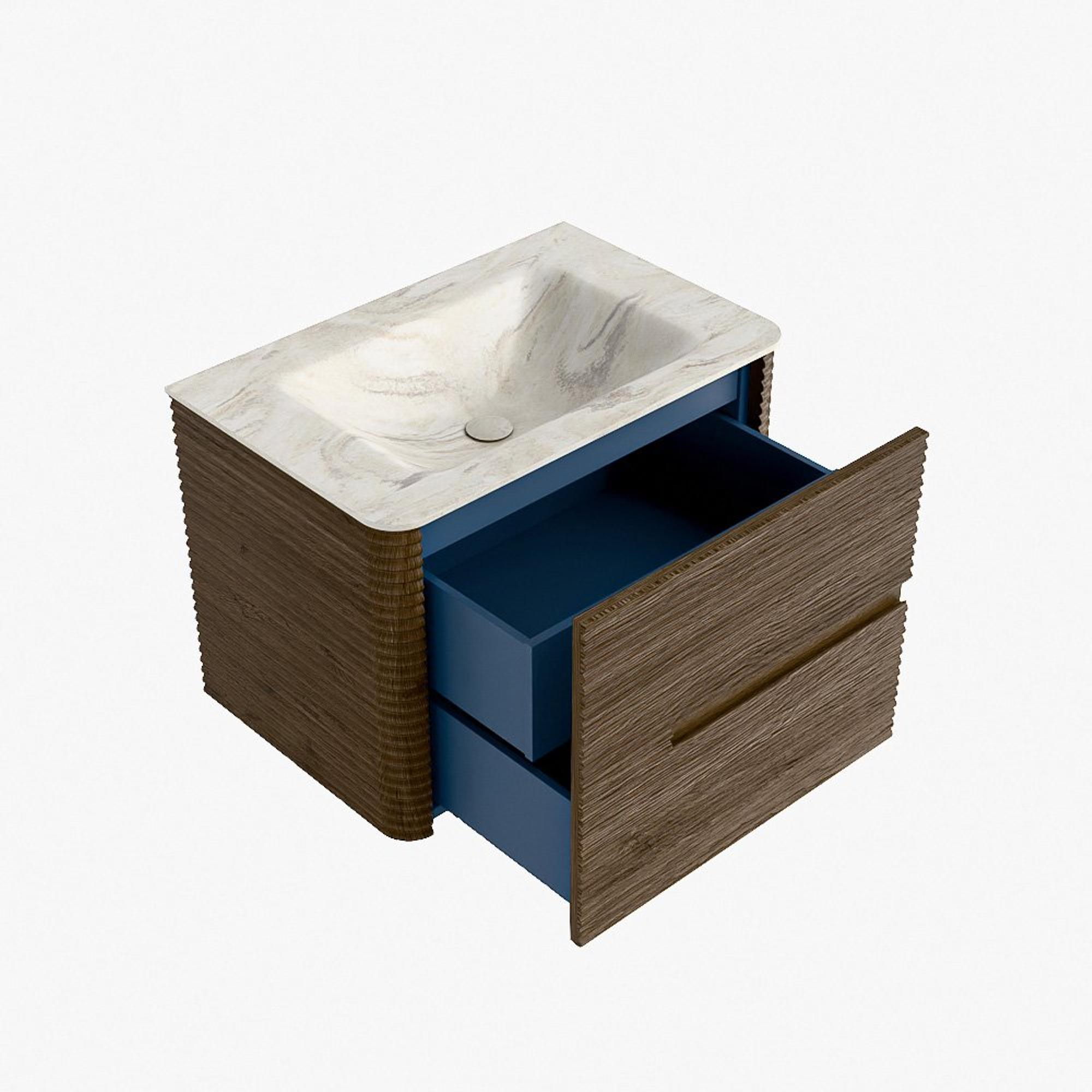 Mondiaz CIRO-DLUX Ensemble de meubles de salle de bains - 70x45x50cm - vasque solid surface Ostra - 1 lavabo au milieu - sans trous de robinet - 2 tiroirs - Dusk