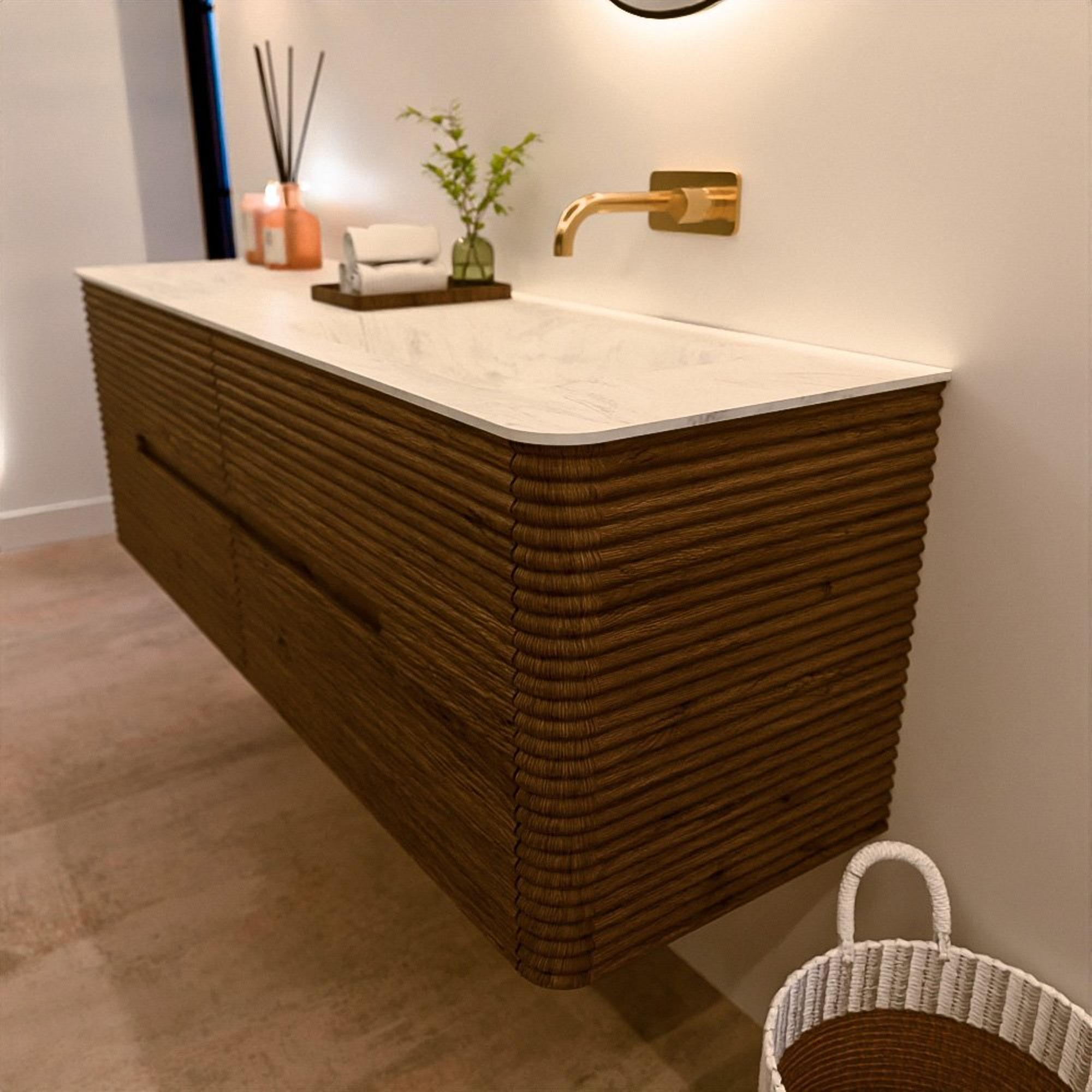 Le meuble de salle de bain CIRO-DLUX a été développé pour ceux qui choisissent un design moderne, des matériaux naturels et une fonctionnalité de haute qualité. Avec des dimensions allant de 70 cm à 190 cm, la gamme CIRO-DLUX s’intègre facilement aussi bien dans les salles de bain compactes que dans les grands espaces de design. Chaque meuble est une combinaison équilibrée d’esthétique, de savoir-faire et de qualité durable.