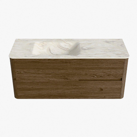 Mondiaz CIRO-DLUX Ensemble de meubles de salle de bains - 120x45x50cm - Vasque en solid surface Ostra - 1 lavabo à gauche - sans trous de robinet - 2 tiroirs - Dusk