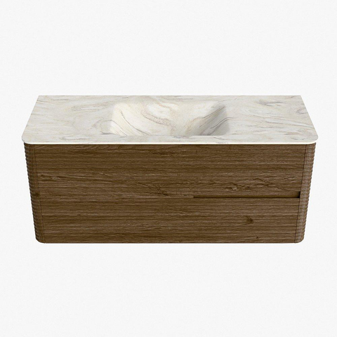 Mondiaz CIRO-DLUX Meuble de salle de bains - 120x45x50cm - Plan-vasque en solid surface Ostra - 1 vasque Centrale - sans trous de robinetterie - 2 tiroirs - Dusk
