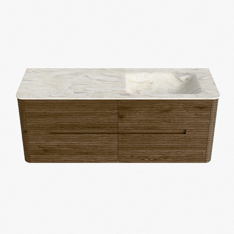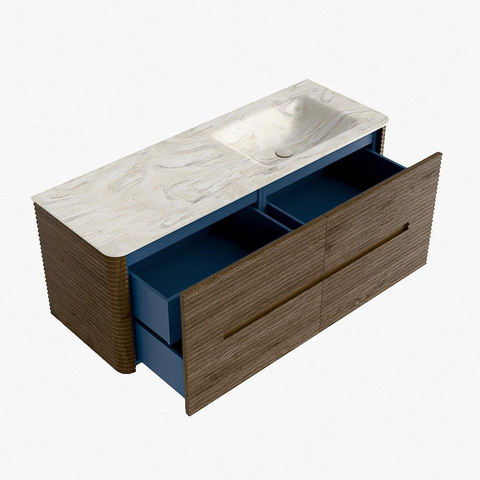 Mondiaz CIRO-DLUX Ensemble meuble de salle de bains - 130x45x50cm - Plan-vasque Solid surface Ostra - 1 lavabo à droite - 1 trou de robinet - 4 tiroirs - Dusk