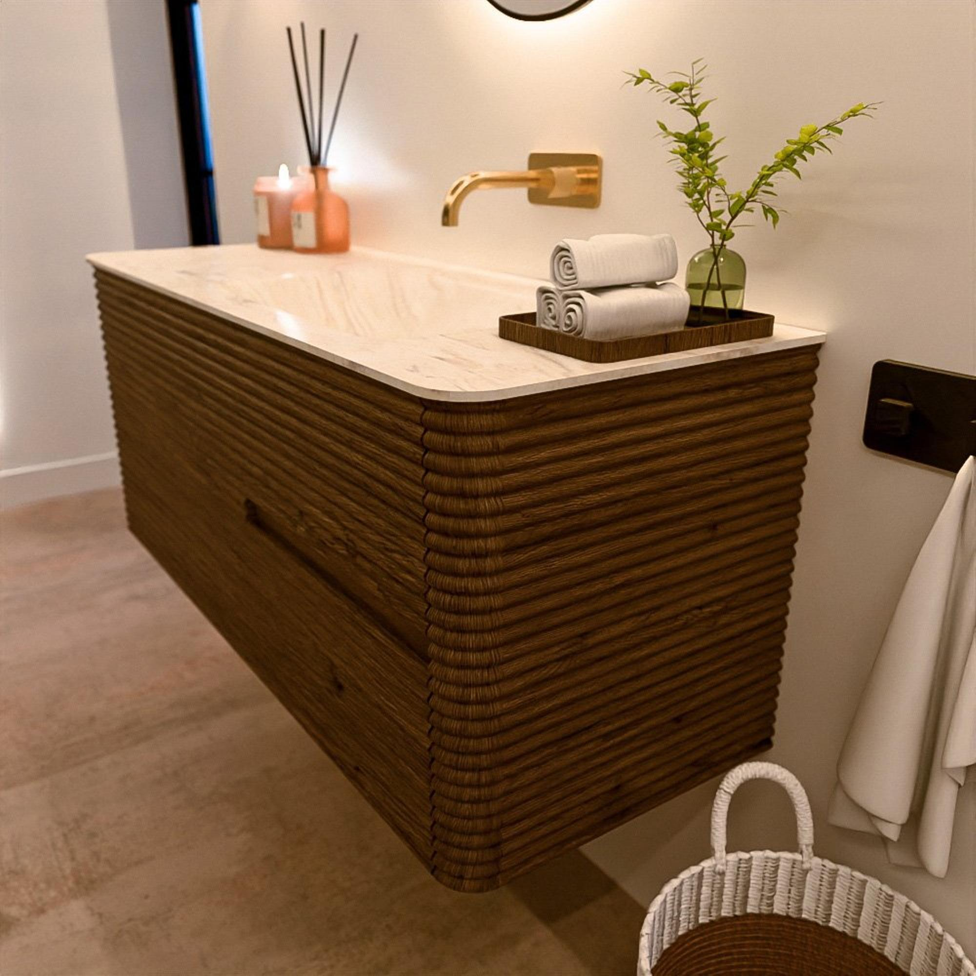 Le meuble de salle de bain CIRO-DLUX a été développé pour ceux qui choisissent un design moderne, des matériaux naturels et une fonctionnalité de haute qualité. Avec des dimensions allant de 70 cm à 190 cm, la gamme CIRO-DLUX s’intègre facilement aussi bien dans les salles de bain compactes que dans les grands espaces de design. Chaque meuble est une combinaison équilibrée d’esthétique, de savoir-faire et de qualité durable.