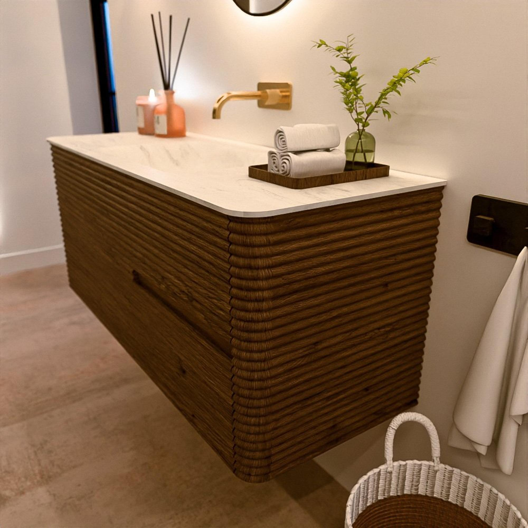 Le meuble de salle de bain CIRO-DLUX a été développé pour ceux qui choisissent un design moderne, des matériaux naturels et une fonctionnalité de haute qualité. Avec des dimensions allant de 70 cm à 190 cm, la gamme CIRO-DLUX s’intègre facilement aussi bien dans les salles de bain compactes que dans les grands espaces de design. Chaque meuble est une combinaison équilibrée d’esthétique, de savoir-faire et de qualité durable.