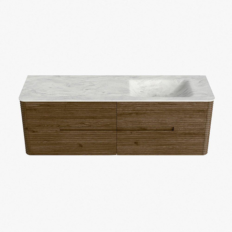 Mondiaz CIRO-DLUX Meuble de salle de bains - 150x45x50cm - Plan-vasque en solid surface Opalo - 1 lavabo à droite - 1 trou de robinet - 4 tiroirs - Dusk
