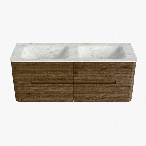 Mondiaz CIRO-DLUX Meuble de salle de bains ensemble - 130x45x50cm - Vasque solid surface Opalo - 2 lavabos double - 2 trous de robinetterie - 4 tiroirs - Dusk
