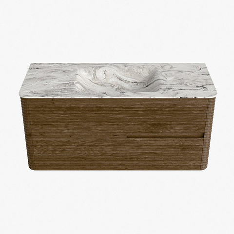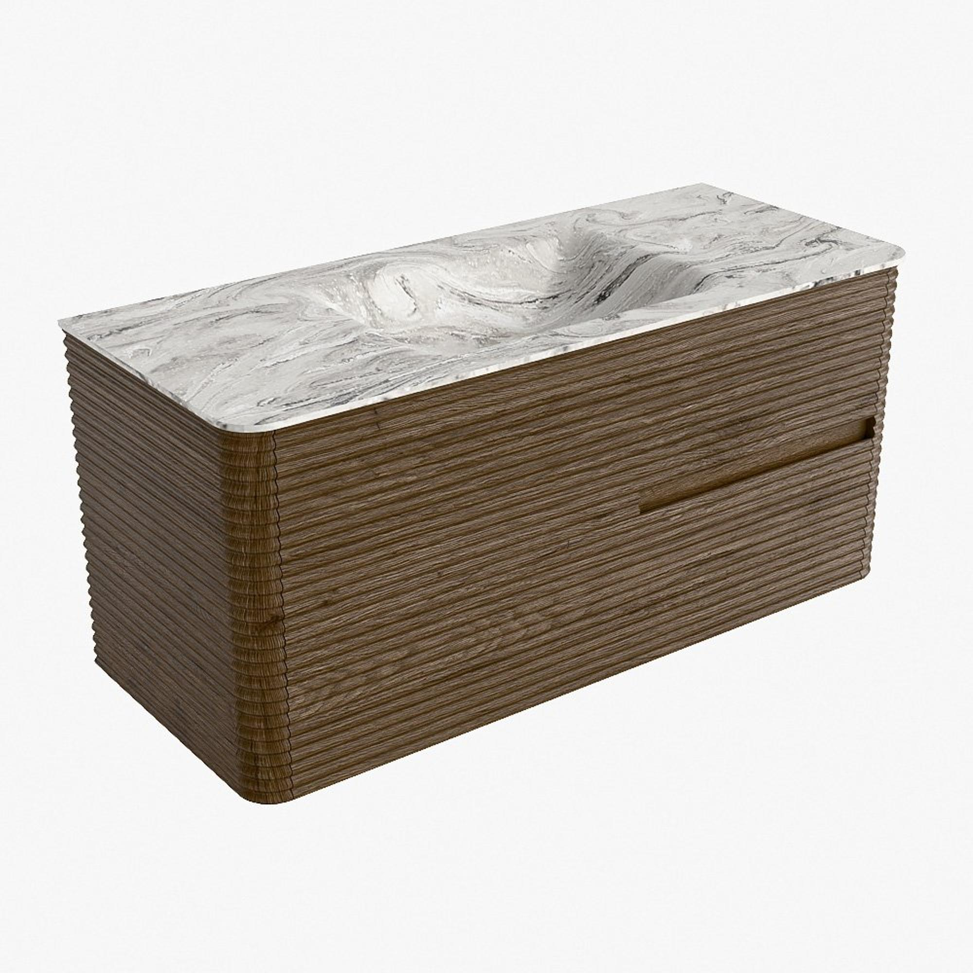 Mondiaz CIRO-DLUX Ensemble de meubles de salle de bains - 110x45x50cm - lavabo solid surface Glace - 1 vasque au milieu - sans trous de robinet - 2 tiroirs - Dusk