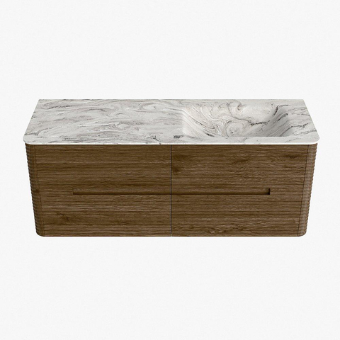 Mondiaz CIRO-DLUX Meuble de salle de bains - 130x45x50cm - Plan vasque solid surface Glace - 1 vasque à droite - 1 trou de robinet - 4 tiroirs - Dusk