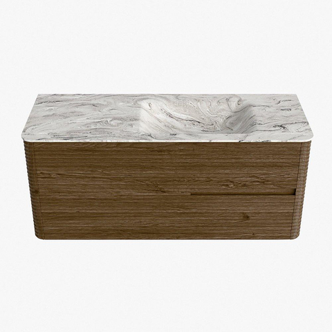 Mondiaz CIRO-DLUX Ensemble de meubles de salle de bains - 120x45x50cm - Plan vasque solid surface Glace - 1 lavabo à droite - sans trous de robinet - 2 tiroirs - Dusk
