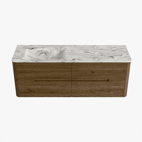 Mondiaz CIRO-DLUX Meuble de salle de bains - 140x45x50cm - lavabo solid surface Glace - 1 bassin à gauche - sans trous de robinet - 4 tiroirs - Dusk