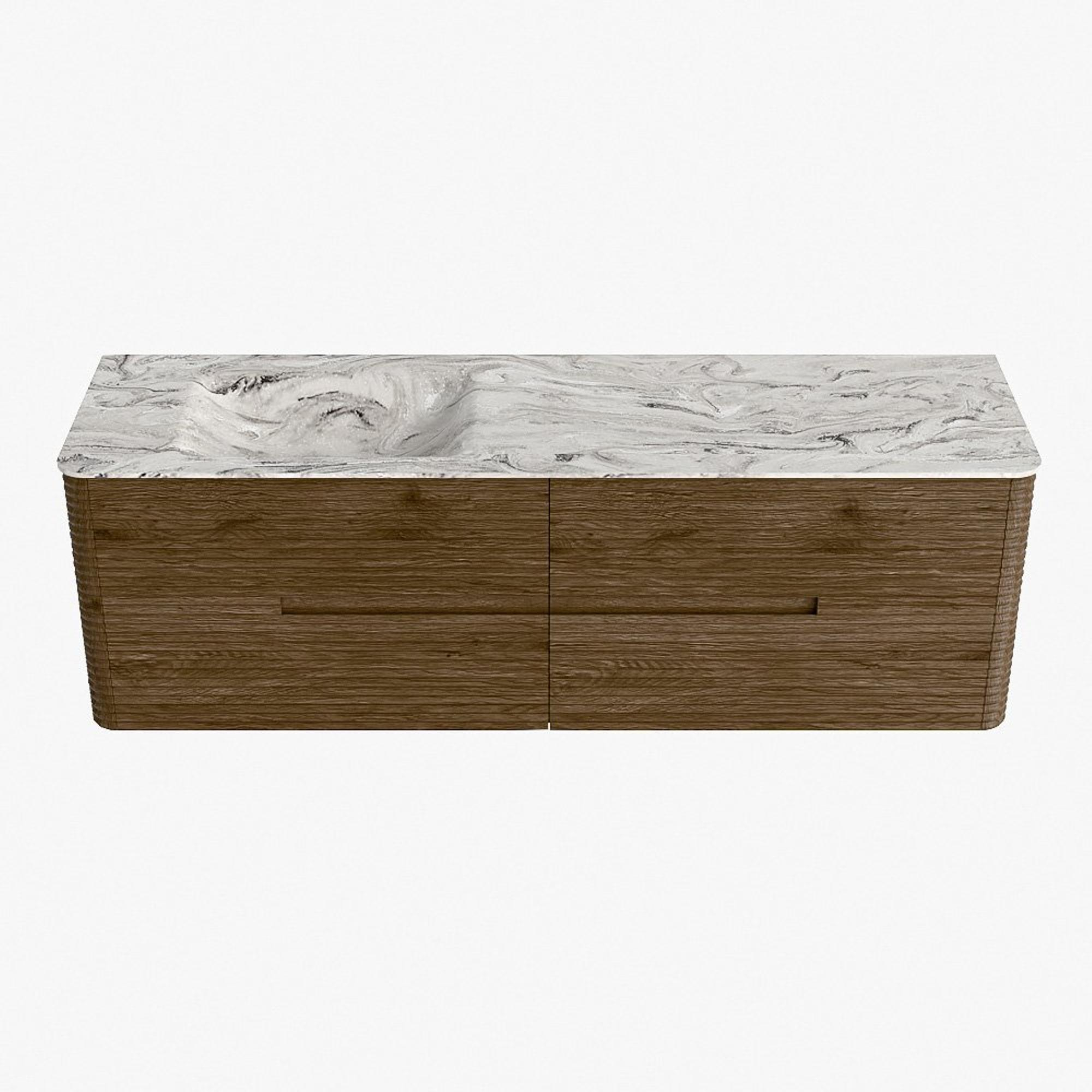 Mondiaz CIRO-DLUX Ensemble de meubles de salle de bains - 160x45x50cm - Plan-vasque solid surface Glace - 1 lavabo à gauche - sans trous de robinetterie - 4 tiroirs - Dusk