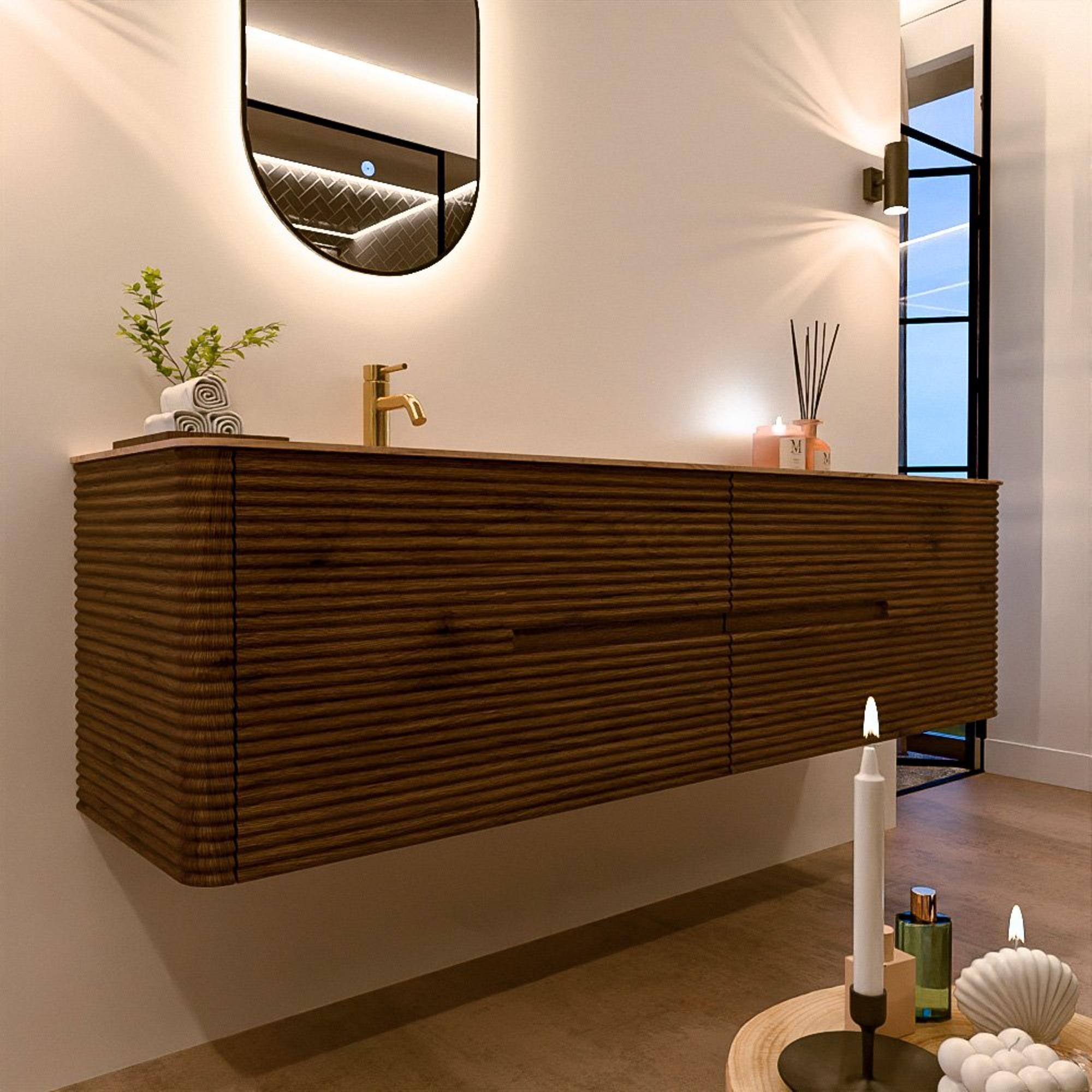 Le meuble de salle de bain CIRO-DLUX a été développé pour ceux qui choisissent un design moderne, des matériaux naturels et une fonctionnalité de haute qualité. Avec des dimensions allant de 70 cm à 190 cm, la gamme CIRO-DLUX s’intègre facilement aussi bien dans les salles de bain compactes que dans les grands espaces de design. Chaque meuble est une combinaison équilibrée d’esthétique, de savoir-faire et de qualité durable.