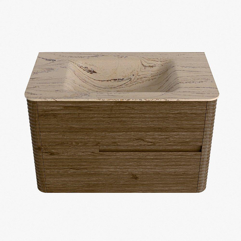 Mondiaz CIRO-DLUX Meuble de salle de bains - 80x45x50cm - Plan vasque solid surface Arena - 1 vasque au milieu - 1 trou de robinetterie - 2 tiroirs - Dusk