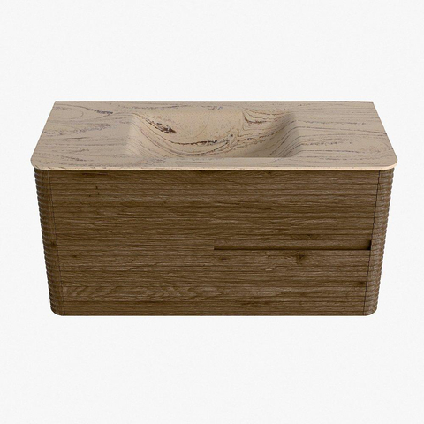 Mondiaz CIRO-DLUX Meuble de salle de bains - 100x45x50cm - Plan vasque solid surface Arena - 1 vasque au milieu - sans trous de robinet - 2 tiroirs - Dusk