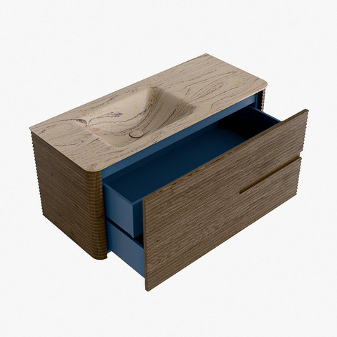 Mondiaz CIRO-DLUX Meuble de salle de bains - 110x45x50cm - Plan-vasque solid surface Arena - 1 vasque à gauche - 1 trou de robinet - 2 tiroirs - Dusk