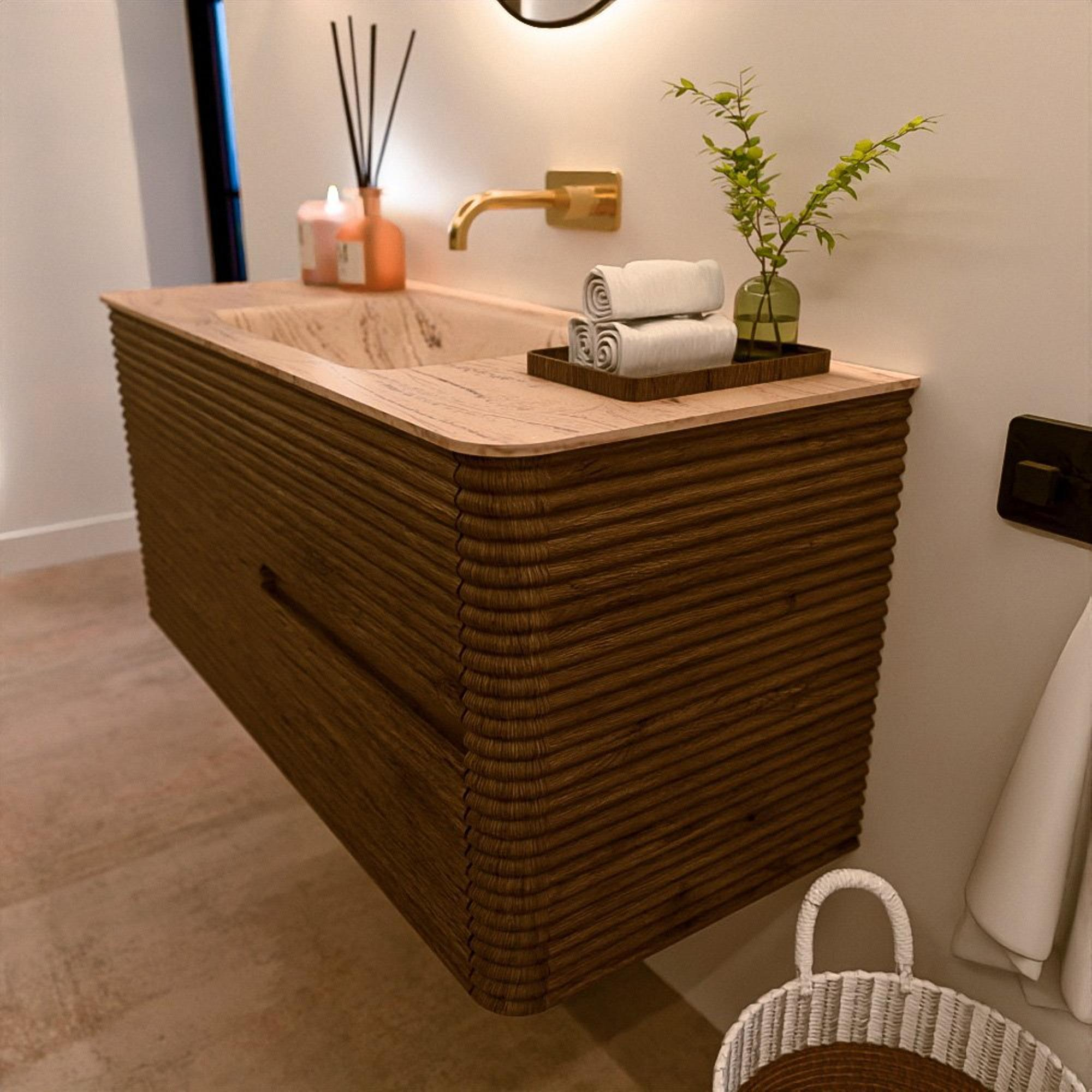 Le meuble de salle de bain CIRO-DLUX a été développé pour ceux qui choisissent un design moderne, des matériaux naturels et une fonctionnalité de haute qualité. Avec des dimensions allant de 70 cm à 190 cm, la gamme CIRO-DLUX s’intègre facilement aussi bien dans les salles de bain compactes que dans les grands espaces de design. Chaque meuble est une combinaison équilibrée d’esthétique, de savoir-faire et de qualité durable.