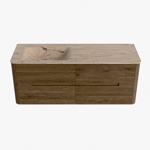 Mondiaz CIRO-DLUX Meuble de salle de bains - 130x45x50cm - Plan vasque solid surface Arena - 1 vasque à gauche - 1 trou de robinet - 4 tiroirs - Dusk