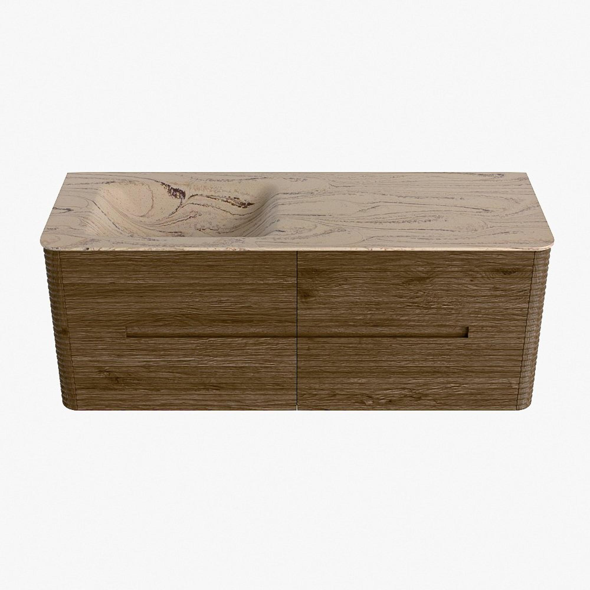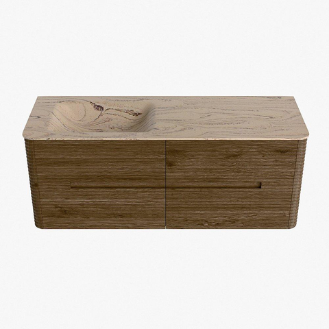 Mondiaz CIRO-DLUX Ensemble de meubles de salle de bains - 130x45x50cm - Plan vasque solid surface Arena - 1 bassin à gauche - sans trous de robinetterie - 4 tiroirs - Dusk