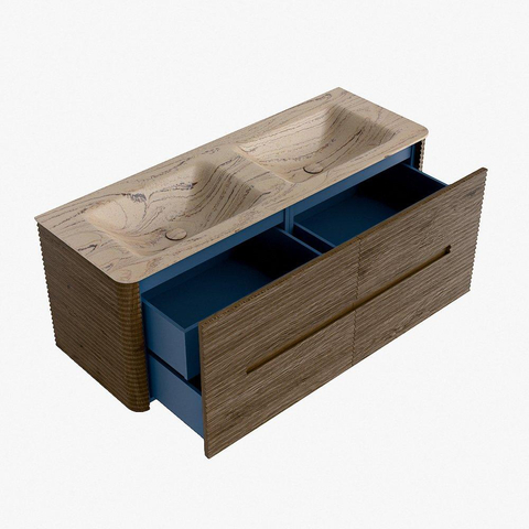 Mondiaz CIRO-DLUX Meuble de salle de bains - 130x45x50cm - Plan vasque solid surface Arena - 2 bassins Double - sans trous de robinet - 4 tiroirs - Dusk