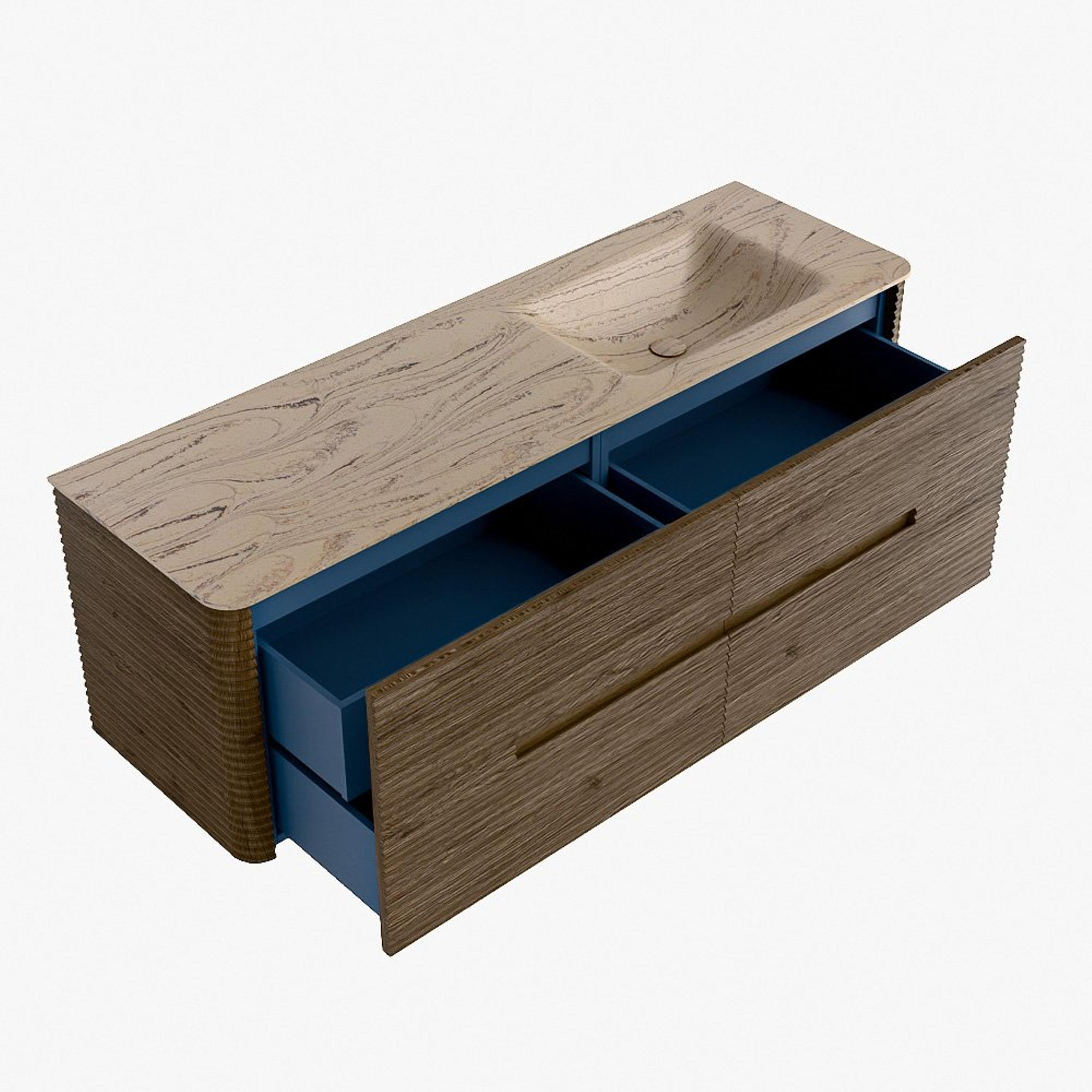 Mondiaz CIRO-DLUX Ensemble de meubles de salle de bains - 150x45x50cm - Plan vasque solid surface Arena - 1 cuve à droite - 1 trou de robinet - 4 tiroirs - Dusk